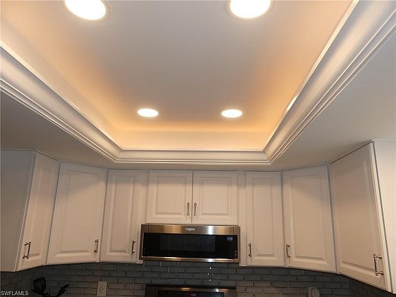 This 2/2 Condo is UPDATED NICELY and MOVE-IN-READY! You will notice upon entering that the kitchen has UPDATED white cabinetry, granite counters, stainless steel appliances, and TRAYED CEILING with recessed lighting and crown molding... There is NEWLY INSTALLED luxury vinyl plank flooring in the living and dining areas, and in both baths. There is new plush carpet in both bedrooms as well... Primary bath and guest bath updates with CUSTOM wall covering in both gives a very MODERN look overall... OTHER UPDATES INCLUDE: Interior doors/hardware, base trim, lighting fixtures, and freshly painted throughout...Custom flooring has been installed on the rear screened lanai and brand new washer and dryer too! There is also COVERED PARKING and the condo is steps from the Community Pool area...Enjoy your morning coffee with serene water views from the screened lanai...then walk next door to the public GOLF CLUB and enjoy a round of GOLF. Short drive from Naples 5th Ave/BEACHES and ALL THAT NAPLES HAS TO OFFER!! CABLE TV included in condo fee.