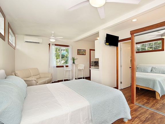 Completely renovated for you, this is studio rental comes with Paradise built in, a place to rest and wash and dine in when you are not on the eternal vacation that is Kailua Beach. A quiet shaded landscaped yard with a sleeping platform and a place for your outdoor dining, drinking, coffee table provides a quiet shelter within the property from the beach side activity.