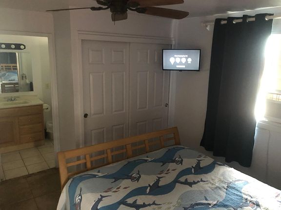 3 back bedrooms have queen beds, AC, TV & ceiling fans. 4th bedroom has 2 double beds. Family room has 50-inch smart TV.