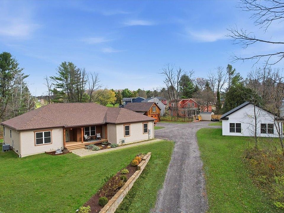 Unique opportunity to own this wonderful one-level home offering over 3,800 sq. ft., plus a detached 1,000 sq. ft. ranch-style guest house with separate utilities.The guest home features one bedroom, one bath and an oversized one-car garage—perfect for extended family, guests, rental income, or Airbnb.The main house boasts a sunny, open floor plan with a spacious kitchen featuring custom cabinetry, stainless appliances, and an oversized center island. The kitchen opens to a stunning great room with a decorative tray ceiling, accent lighting, and large windows that fill the space with natural light.The bright primary suite includes a private tiled bath with a walk-in shower, walk-in closet, and convenient washer and dryer hookups. Two additional guest bedrooms—one with French doors—offer flexibility for use as an office or den.The finished lower level with garden windows includes a bedroom, ¾ bath, oversized family room, theater room, and two storage areas.Adding to the charm, you’ll find an 1860 reclaimed post-and-beam barn (22'×32') relocated from Jericho, featuring a second floor and lean-to for additional storage.Enjoy a peaceful country feel—sip your morning coffee on the front porch while admiring the church steeple and surrounding trees, or entertain on the back patio with extensive stonework, a post & beam pergola, and beautiful landscaping.You’ll love the convenience of being just minutes to Williston Village, bike path and schools .