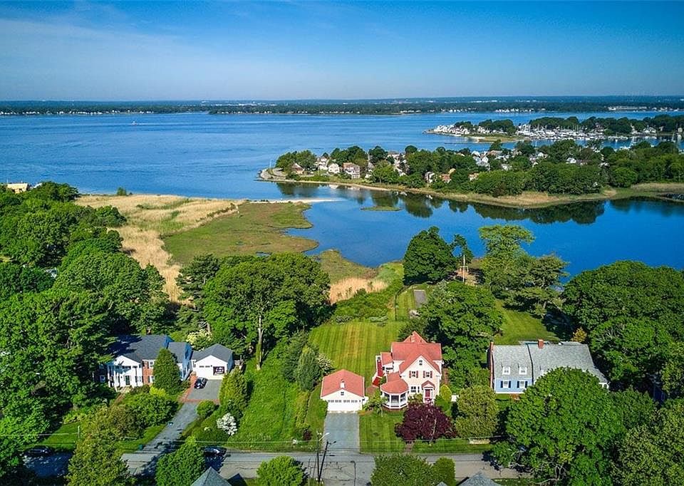 This circa 1897 Weltha Buckingham plaque house overlooks magnificent water views of Allins Cove and Barrington's conservation land trust consisting of native coastal grasses, marshlands and a variety of wildlife species of aquatic birds, ducks, heron, swans and osprey. This special 3 bedroom, 2.5 bath Victorian boasts a newer granite and stainless kitchen opening to a sunlit family room with banks of windows to accentuate the wonderful water views, manicured floral gardens and seaside waterlife. High ceilings and architectural details are found throughout the house with newer windows, newer gas heating system, hardwood floors, skylights, central air on first level and a circular 3 season porch with wrap around decking ideal for entertaining. Possible fourth bedroom or office located on the third floor has new electric heating, walk in storage and clothes closet. This home accentuates the charm of yesteryear with all of the amenities of today's modern living. Steps to Allins Cove Beach, Muskchuck Beach and bike path. A real gem, don't miss! No flood insurance required.