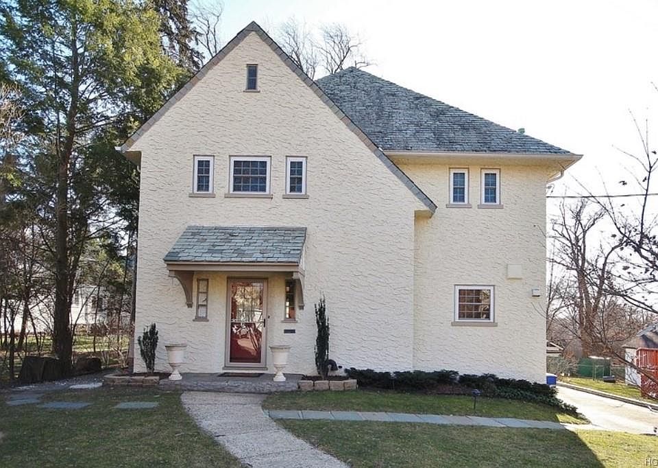 Elegant Tudor with many updates! Enjoy the blend of original architectural details, including a slate roof, with modern amenities. Updated gourmet kitchen with granite counters, stainless appliances (subzero refrigerator) & cherry cabinetry. Wonderful living space is newly painted, has a fireplace in living room, hardwood floors, central air, & recessed lighting. Updated master bath & powder room, new windows throughout and new boiler. Walk up attic & semi finished basement (not included in square footage) offer lots of storage space. Outside level property, along with a bluestone patio and 2 car garage (with new insulated door) present a superb setting both inside and out.