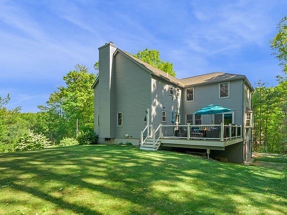 This beautiful updated home is located in top-rated Tyngsboro (Boston Globe) on a quiet 1.49 acre lot, close to schools and Rte.3 for commuting and shopping in nearby Nashua, NH. The home has been lovingly maintained and expanded with a large 2005 addition. A spacious, bright living room with gas fireplace opens to a new large composite deck overlooking your private yard. Prepare meals in the updated kitchen with center island and granite countertops while entertaining guests at the kitchen bar. On cooler nights enjoy the cozy family room with wood burning fireplace and separate formal dining room. Upstairs find a large primary bedroom with office and ensuite bathroom, two additional bedrooms and full bath. Additional entertaining space is up the stairs to the third floor bonus room with open floor plan and skylights. Upgrades include two recently replaced furnaces, high-efficiency windows, and recently painted exterior. Don't miss this exceptional opportunity.