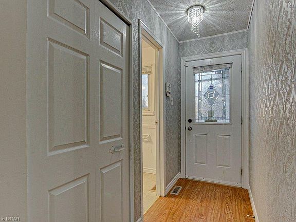 Perfect home for first-time homeowners Welcome to a 2 Storey Condo located in a highly sought-after White oaks community!!! situated with easy access to the 401/402 and within walking distance of excellent schools, community center complete with a pool and White Oaks shopping and dining district. This freshly painted unit features 3 bedrooms, 1.5 baths, large living room with bay windows . This recently refreshed unit offers a bright kitchen, dining area and spacious living room sliding doors that opens up to a fully fenced Backyard. The main floor also offers a convenient 2 piece bathroom. The upper level features a primary bedroom with two closets, 2 additional bedrooms and bright 4 piece bathroom. The lower level has a finished family room and an unfinished area providing ample storage space and a rough-in for a bathroom. Recent upgrades to the unit and tones of storage space., contemporary pot lights and lighting fixtures, New furnace and A/C 2024 ,and much more. Walking distance to great schools, community Centre with pool, 401 highway, public transit, and White Oaks Shopping & Dining.