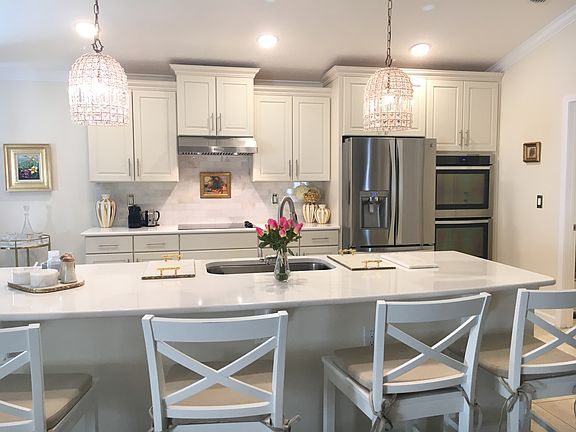- Interior Features: Blinds, Ceiling Fans, Kitchen Island, Solid Surface Counters, Walk In Closet, Split Plan, Volume Ceiling, Cathedral Ceilings, 1st Floor Bedroom