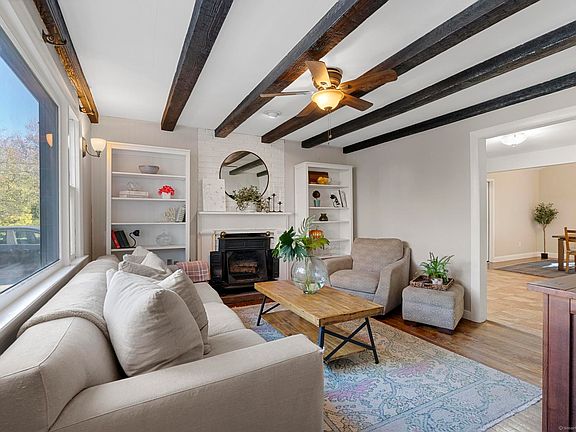 Welcome to 55 Augusta Street! This charming 2-bedroom ranch-style home offers warmth, comfort, and thoughtful finishes throughout. Inside you will find a cozy living room highlighted by a wood-burning fireplace, hardwood floors, and a large window that fills the space with natural light. The kitchen offers plenty of space with stainless steel appliances and granite-tiled countertops. Adjacent to the kitchen, the spacious dining room features cathedral ceilings with a large bay window, creating an airy and inviting atmosphere. French doors off the dining room open to a fully fenced, private backyard-perfect for outdoor entertaining. The main level includes an updated full bathroom and two bedrooms for convenient one-level living. Downstairs, the partially finished basement provides additional flex space-ideal for a home office, playroom, or workout area. A newly installed basement waterproofing system and hot water heater offer added peace of mind. Don't miss the opportunity to make this delightful home yours!