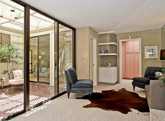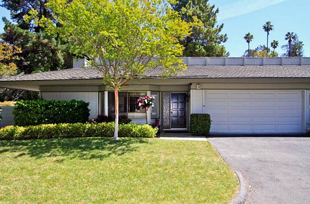 Single level end unit approx 1,840 +/- sf in elegant gated North Los Altos community, Creekside Oaks. Sunny kitchen with double ovens in bay window cooking island, kitchen also view to lg formal living room w/gas fireplace, separate dining room, separate den/office with storage room/could be interior laundry. Ex-large fenced backyard with hydrangeas, mature trees & 2 patios. Mins to The Village!