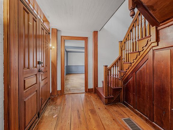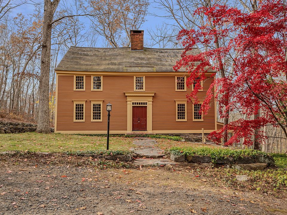 The 'Gavitt House' stands as an exceptional example of 18th-century New England architecture-one of the early historical border houses between Rhode Island and Connecticut. Relocated 50 years ago to its tranquil setting in Lyme, this distinguished antique rests amid a rolling countryside of open meadow, sturdy hardwoods and bordered by the protected lands of Nehantic State Forest. Within its 3,400 square feet of living space are 2-3 bedrooms, two and a half baths, and an abundance of period detail. Wide board floors, beamed ceilings, extensive moldings, and seven fireplaces showcase the craftsmanship of a bygone era, while 12 over 12 windows fill most rooms with natural light. Gracious formal rooms flow effortlessly into inviting gathering spaces, designed for comfortable living and easy entertaining. A finished walkout lower level provides flexible space-ideal for guests, in-laws, or a private studio. Set off a quiet country road and surrounded by nature, the 'Gavitt House' offers timeless character, cherished privacy, and the rare opportunity to own a piece of New England's architectural heritage. Experience the rural charms of Lyme and the natural beauty of the Connecticut shoreline from this truly remarkable home.