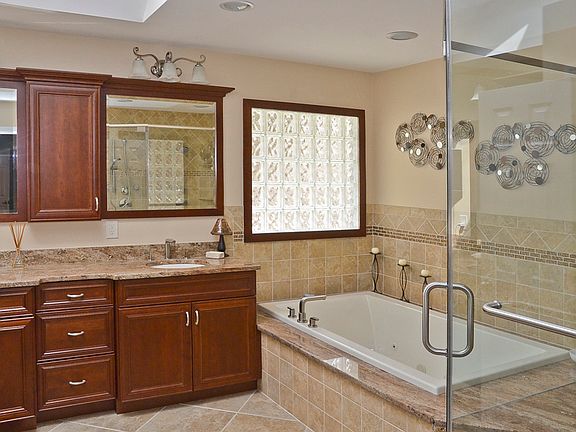 This is the perfect home for entertaining! Fully renovated 5BR/4.5 bath expended ranch with beautifully landscaped yard and in-ground heated pool. Gourmet kitchen of your dreams featuring an impressive indoor grill, professional 6 burner WOLF range, custom cabinetry, wine fridge, stone/marble countertops & much more. Kitchen & fam room open up to the large stone patio and pool area. Primary BR suite features 2 custom walk-in closets, separate sitting area & luxurious bath with large vanity, dual shower & jetted tub. Three of the 5 bedrooms are ensuite. Lower level has large rec room, private bedroom and full bath perfect for guests or nanny suite and tons of storage. Security system, in-ground sprinklers, multi-zone heating are just a few of the many upgrades to this gorgeous home. Located on a quiet tree-lined street just minutes from major highways, restaurants and shopping.