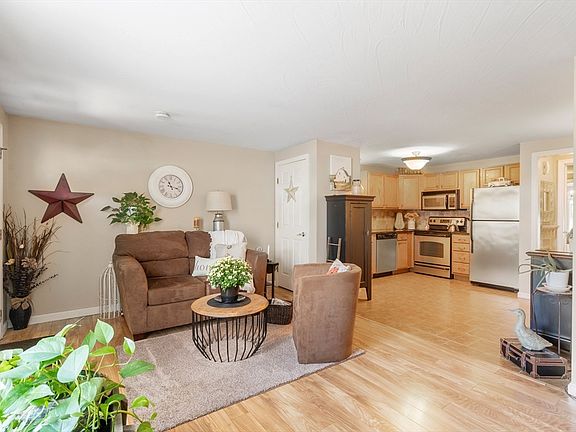 This cozy First level One bedroom Garden Condo offers great opportunity for single level living with almost 900 SF of living space and walk out access to rear patio area. Features ample living space, including a formal living room / dining area, large kitchen, separate den or office area, full bathroom and large bedroom that has views of a rear landscaped area / patio. Luxury vinyl plank flooring throughout, tile in kitchen and new carpet in bedroom. Plenty of space for entertaining or relaxing. In-unit laundry. HOA fees include exterior maintenance, landscaping & snow removal. Conveniently located near area amenities and close to major roadways. Welcome home!