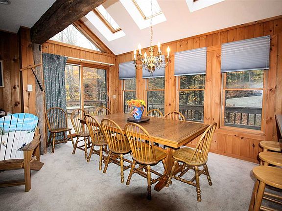 Situated on a double lot comprising an acre of land, this Chimney Hill home boasts a huge amount of living space with a large open concept living/dining/kitchen. The upstairs light-filled living room features cathedral ceilings, dining room skylights, a wood burning fireplace and a gas stove for extra warmth. There's a first floor bedroom plus two more bedrooms on the second floor along with a great loft for extra sleeping space or a quiet reading nook. The full walk-out lower level has a bar, gaming tables, an extra room for office space, bathroom, and additional gas stove. Mudroom entry provides an area for the washer and dryer and lots of space for your equipment. Don't miss out on this great house! Enjoy all of the amenities including the newly renovated Clubhouse with both indoor and outdoor pools, exercise room, tennis, basketball, skating rink, warming hut, snowmobile trails, and more. Chimney Hill is located on the south side of Haystack Mountain so we are just minutes from skiing, golf, the lakes, Mount Snow, and the Hermitage Club.