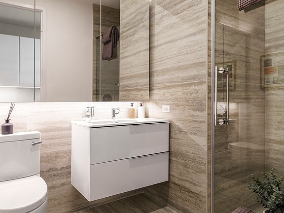 Welcome to Fifty-Five Broad, where New York's rich history meets contemporary luxury living in the heart of the Financial District. Each residence boasts 10-foot ceilings, oversized picture windows, and stunning cityscape or water views. Enjoy custom Italian kitchens with integrated appliances and quartz countertops, luxurious bathrooms with Porcelanosa vanities, and the convenience of in-unit Bosch washers and dryers.