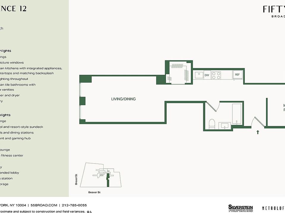 Indulge in over 25,000 square feet of world-class amenities, including a resort-style roof sundeck with an outdoor pool, Technogym fitness center, coworking lounge, and 24-hour attended lobby. Perfectly situated in this dynamic neighborhood, Fifty-Five Broad offers easy access to high-end shopping, Michelin-starred dining, and expansive green spaces, with excellent transportation options nearby. Make this exceptional building your new home and become part of the ongoing story of one of the city's most dynamic neighborhoods. Schedule your private tour today and discover your new home!