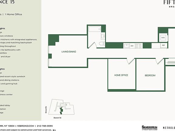 Indulge in over 25,000 square feet of world-class amenities, including a resort-style roof sundeck with an outdoor pool, Technogym fitness center, coworking lounge, and 24-hour attended lobby. Perfectly situated in this dynamic neighborhood, Fifty-Five Broad offers easy access to high-end shopping, Michelin-starred dining, and expansive green spaces, with excellent transportation options nearby. Make this exceptional building your new home and become part of the ongoing story of one of the city's most dynamic neighborhoods. Schedule your private tour today and discover your new home!