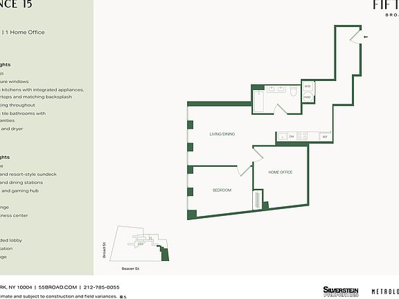 Indulge in over 25,000 square feet of world-class amenities, including a resort-style roof sundeck with an outdoor pool, Technogym fitness center, coworking lounge, and 24-hour attended lobby. Perfectly situated in this dynamic neighborhood, Fifty-Five Broad offers easy access to high-end shopping, Michelin-starred dining, and expansive green spaces, with excellent transportation options nearby. Make this exceptional building your new home and become part of the ongoing story of one of the city's most dynamic neighborhoods. Schedule your private tour today and discover your new home!