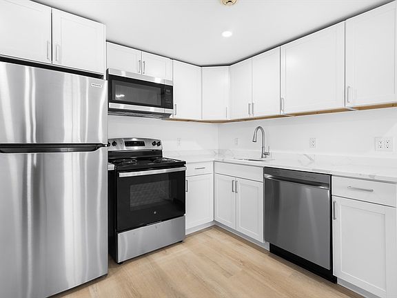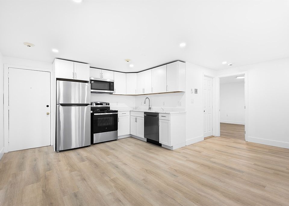 LOCATION! Be the first to live in this newly renovated 2 bedroom. Perks: Private little patio,1 car private assigned parking, quartz countertops, common laundry on first level (new machines), new A/C unit, multiple closets throughout the apartment, walking distance to downtown, minutes to the purple line Lynn Interim station, North Shore Community College, around the corner from Harrington Elementary School, and Lynn's sought after Diamond District. 1 small pet allowed. Hot water, water & sewer included in the rent. Photos are virtually staged and/or of similar unit in building. Updated photos to arrive on 11/19/2025.