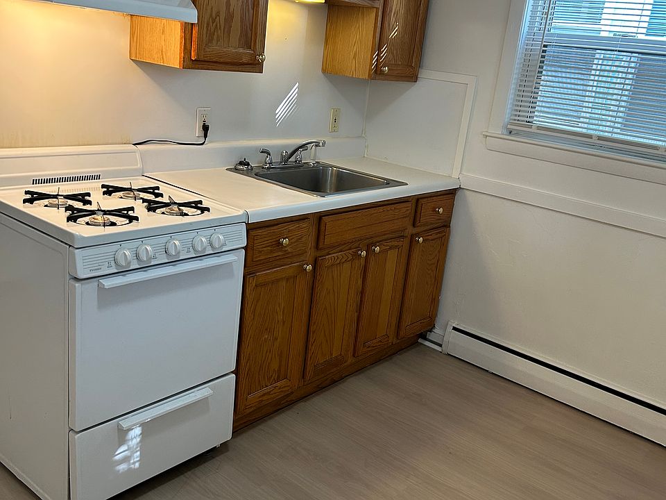 Closet space in apartmentNewer oak kitchenAll new hardwood floorsGas cookingTile floorUnder cabinet lightingLarge bedroom
