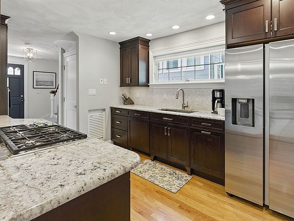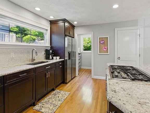 Winner of a historic preservation award & sure to impress at every turn, this Swampscott gem is packed with charm & thoughtful updates! Inside, you'll find hardwood floors, central A/C & a bright, open layout. The kitchen is a stand out with cherry cabinets, granite counters, tile backsplash, top tier appliances, Wolf 5-burner gas cooktop, walk-in pantry & breakfast bar. This level has a great flow through the dining area w/slider + dry bar, a family room, 3/4 bath & a lovely living room anchored by columns & sconces. A large bonus room adds flexibility as a home office or 4th bedroom. Upstairs are 3 spacious bedrooms with closet organizers + a tasteful full bath. The finished lower level brings even more versatility/space + a laundry room, mudroom & garage access. Outside, enjoy a newly painted deck & exterior, stone patio & large, private yard that abuts Jackson Park conservation land/trails. Under a mile to the beach, shops, dining & Commuter Rail -this home delivers on every level!