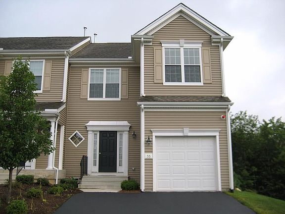 Three bedroom "Longwood" Townhouse (end unit) with 2.5 baths & one-car garage attached garage, rear deck overlooks wooded area. Two story foyer, large dining room and living room. Master suite w/bath, double sinks & tub, walk-in closet. Eat-in kitchen with stainless appliances and slider to deck. Second floor laundry. Large unfinished walkout basement. Gas heat, gas hot water and central air conditioning.