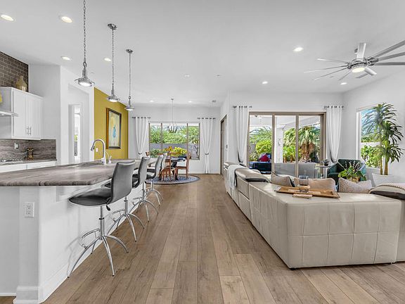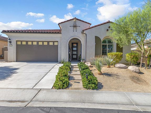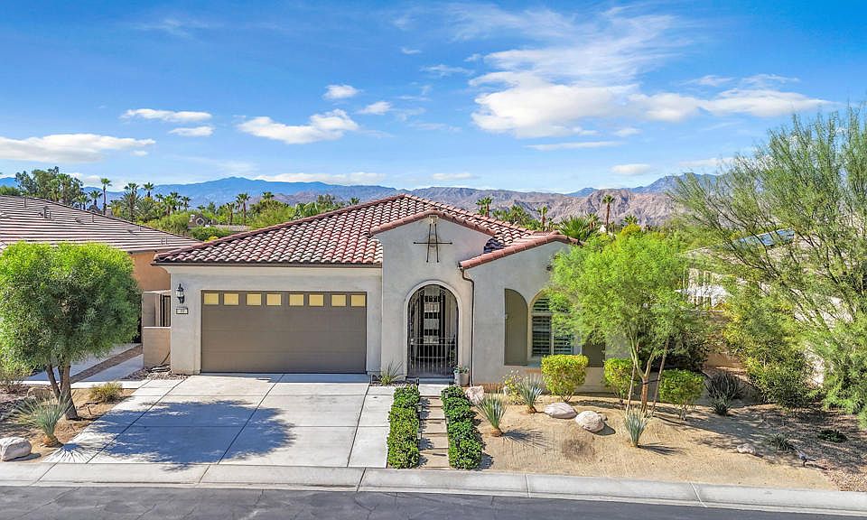 Welcome to your private desert retreat in the 55+ gated community of Del Webb Rancho Mirage! This highly desirable Preserve Model features 2 bedrooms + den (easily a 3rd bedroom), 2 baths, and a bonus flex room off the garage--perfect for a workshop, studio, or ''man-cave.'' The open-concept great room with custom bar flows seamlessly into the gourmet kitchen with stainless appliances, upgraded cabinetry, large island, and walk-in pantry. Multi-panel glass sliders lead to an expansive covered patio with tiled flooring, fire pit, commercial misting system, heaters, and remote-controlled sunshades--perfect for year-round entertaining. Enjoy low-maintenance landscaping, a private hot tub, and stunning mountain views. Residents enjoy resort-style amenities including a clubhouse, fitness center, pools, pickleball, tennis, bocce, and a vibrant social calendar.