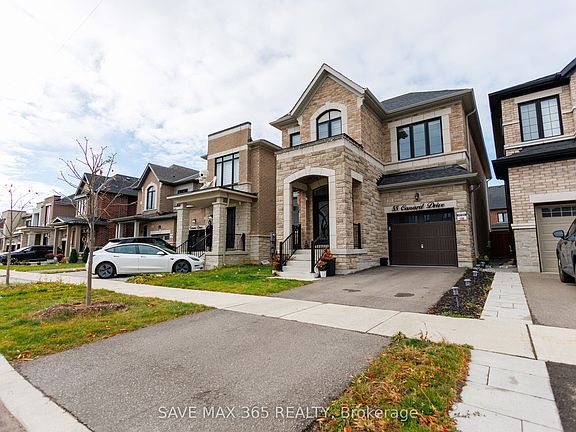 Beautiful Detached 4-Bedroom, 4-Bathroom Home with $100K in Upgrades! This stunning detached home sits on a 30-ft lot and features an attached single-car garage. Enjoy a modern open-concept layout with upgraded quartz kitchen countertops, soft-close cabinetry, spice rack cabinet, and a large island with breakfast bar. Elegant pot lights on the main level, chandeliers over the dining area and kitchen island, and engineered hardwood flooring (7.3/4") add style and warmth throughout.The spacious family room includes a large gas fireplace, perfect for cozy evenings. The primary bedroom offers two walk-in closets and an extended ensuite with upgraded sinks and countertops. Additional highlights include an appliance tower, central vacuum, and high-end finishes throughout.Move-in ready and thoughtfully upgraded-this home is perfect for families seeking comfort, style, and convenience!