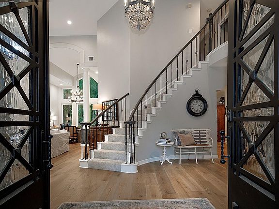 Remodeled LifeForms home in Cochran's Crossing - centrally located and close to parks, restaurants, and shopping! Fresh interior and exterior paint, new plantation shutters, all new carpet upstairs, added water softener, new water heaters in 2021, custom kitchen and laundry room cabinets, all new LED lighting, and so much more! The new iron entry doors lead you inside to a two story foyer; stunning hardwood floors throughout the downstairs; the study features French doors, built-in desk and beautiful trim work; incredible natural light flows through the brand new windows; both formals open to one another with a cozy fireplace; sleek island kitchen with under cabinet lighting and breakfast bar opens to the breakfast room and den; owner's retreat down with gorgeous bath; three bedrooms, game room and bonus room up; fenced yard with covered patio, resurfaced pool with new heater and plenty of room to play!