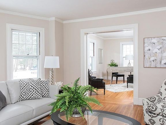 This elegant Colonial Revival home is highlighted by a stunning wrap-around porch and is majestically sited in a historic estate neighborhood. Details include hardwood floors, high ceilings and a classic architectural design with beautifully proportioned rooms. The foyer features a striking staircase and leads to a cozy library with built-in cabinetry. The formal dining room opens to a sunny kitchen. Entertain fireside in the living room or find your way to the deck overlooking the grounds. The family room with oversized windows capture the southern exposure. The flexible floor plan allows you to create a first floor guest or in-law space with separate entrance. The second floor includes the master suite with fireplace, a hall bathroom and two spacious bedrooms. A walk-up third floor is ideal for an au pair or extended guests with a bedroom, full bathroom, and study. Enjoy this special home with its beautiful country setting just minutes from the commuter train and major routes.