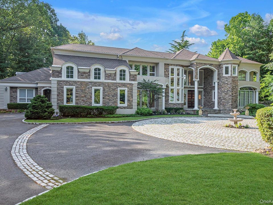 Outdoors, experience a true retreat with a gunite heated pool, a private tennis court, and multiple balconies offering breathtaking views of the lush grounds. The three-car garage adds convenience, while the estate’s end-of-cul-de-sac location ensures the utmost privacy.