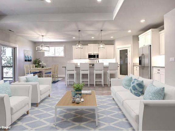Beautiful new construction in the Eagle Point Golf Community built by Mark Christy Construction. Nice large lot in a quiet cul-de-sac location offering RV parking and mature trees. This home is a reverse living style plan with an open great room, large island kitchen, laundry room, master suite, and extra bedroom (or office) and full bath on the main floor. Home is finished with upscale amenities including stainless appliances, tiled master suite shower, granite countertops and backsplashes throughout, laminate flooring and on trend carpet in the bedrooms and stairway. Large deck off the great room and master suite with great views. There is a bedroom, full bath, large rec/game room downstairs with slider to the patio, which would be perfect for extended family living. The backyard is large with plenty of room for a pool, the front yard is landscaped with timed sprinklers. Ready to move in today!
