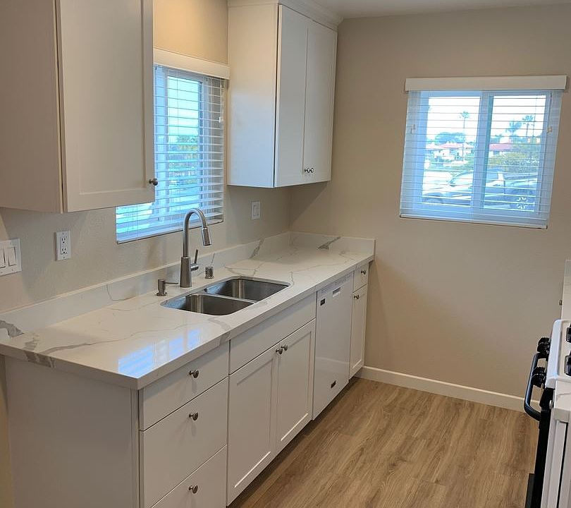 Newly Renovated Downtown Encinitas Home with Ocean View! 3BD, 2BA - Brand new complete renovation of this 3 bedroom, 2 bath, single-story home! Gleaming white cabinets and quartz countertop in this gorgeous new kitchen. Two new bathrooms with custom tile, vinyl plank flooring throughout, along with new dual pane windows and sliding doors. Newly landscaped backyard with terraced patio and grass. Elevated seating area with ocean views! One car garage with laundry hookups. New furnace, lighting and designer touches throughout the home. Excellent location just across the street from the Encinitas Library, parks, Coaster station and just a block to downtown Encinitas and another two to Moonlight Beach! Gardener provided. Tenant pays all utilities. One year lease.