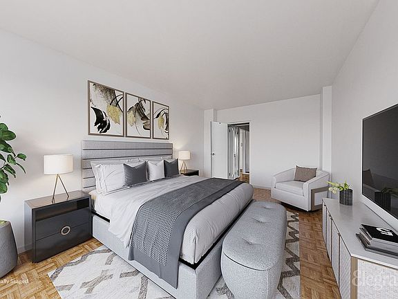 Designed in 1951 by renowned architect Emery Roth, 55 East End Avenue, also known as Riverview South, is an impeccably run post-war co-op that sits directly on the East River Promenade. This full-service building is pet-friendly and offers exceptional doormen and porters, live-in building manager, a health club, a fantastic roof deck, private storage, and central laundry. Pied-a-terres permitted, and guarantors allowed with board approval.
