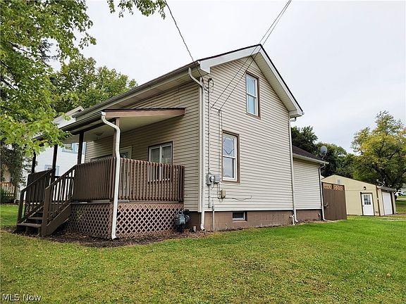 This home has quite a bit to offer at this price. Low maintenance vinyl siding with replacement windows, basement waterproofing and new central air. One of the bedrooms is on the 1st floor along with the convenient laundry off of the large kitchen. Partially finished basement could be 4th bedroom or rec room. Relax on the nice covered front porch or the large rear deck which is waiting for somebody to fire up a grill. Detached garage (24x24) has room for 2 cars and more for storage.