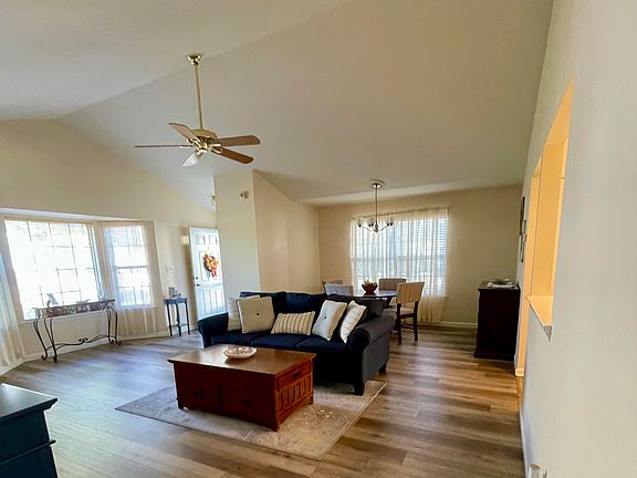 Move right in without a thing to do! This immaculate updated 2 bedroom, 2 bath detached home will wow you! Open living room & dining room with new luxury vinyl floors. Freshly painted. Best of all - NO popcorn ceilings! Spacious kitchen with granite counters, tile backsplash and newer stainless appliances. Eat-in area in kitchen with half wall open to cozy den area with sliders to the yard. Two spacious bedrooms including a huge master bedroom w/full bath and shower stall. Plenty of closets too. New roof installed in 2020 and new furnace/AC just 5 years young. Newer replacement windows! Backyard has a new extended paver patio for your enjoyment and professional landscaping too! One car attached garage with plenty of shelving and double wide driveway. This home is lovingly maintained!