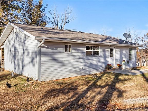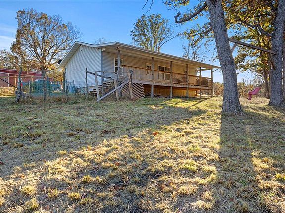 Make your quiet country dream a reality! This 3 bed 2 bat home sits on 10 acres of sprawling forests and private trails. Enjoy watching wildlife from your huge covered back porch, surrounded by nature on all sides with total privacy. Live as if you're in a state park while being mere minutes from town. Inside the 1,260 square feet this well appointed home, you will fall in love with the open, 1 level living floor plan with beautiful hardwood floors, wood burning fireplace, and modern amenities. Additional storage and workshop space can be leveraged in the massive metal barn. For peace of mind, an in ground storm shelter is conveniently located nearby with access from the enclosed garden area. This property seamlessly combines the tranquility of country living with town access and contemporary features...a rare gem with endless possibilities.