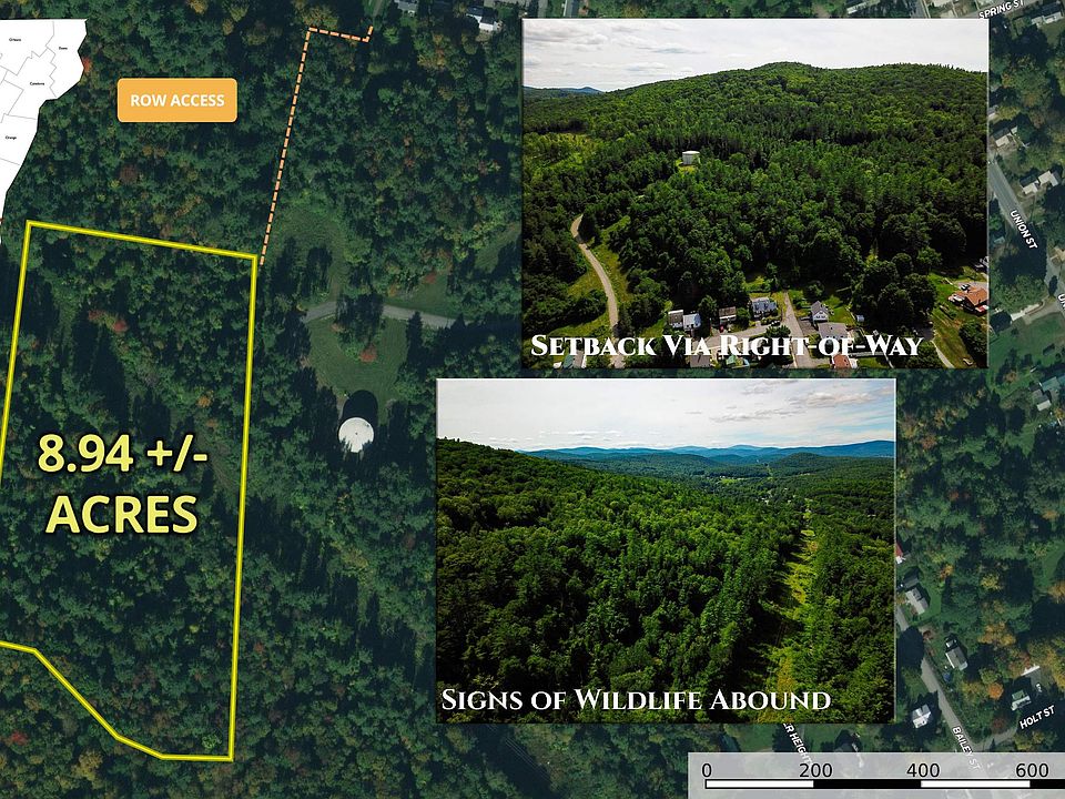 This 8.94 +/- acre lot would make a great recreational property located just outside the city residential district in Springfield, VT. The lot sits up high overlooking the town and surrounding hills. Per the seller’s understanding, a residential dwelling could be possible on this lot if appropriate septic is found, but the best use may be as a recreation lot. Accessed by an unimproved right-of-way from Foster Avenue, walking the approximately 600’ long right-of-way from the end of Foster Ave to the property is the only way to currently access this lot. The property appears to be bounded by stone walls and is a mixture of pine and some hardwoods with dense undergrowth. There are numerous old apple trees with deer, turkey and grouse tracks abound. These animals are likely using the powerline easement as a travel corridor. The property enjoys some views, which may be improved with clearing. Zoned “Land Reserve 25”, it abuts the town water tower property and is surrounded by undeveloped timber tracks. Power at Foster Ave and on adjoining property. Within minutes to town amenities. Just 35 minutes outside of White River Junction. Come explore!