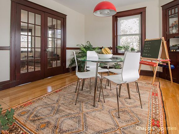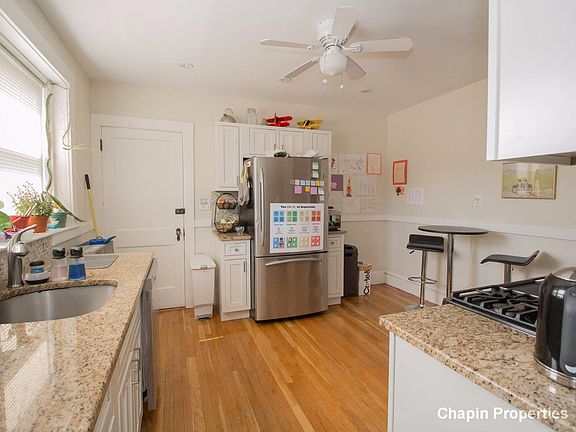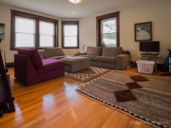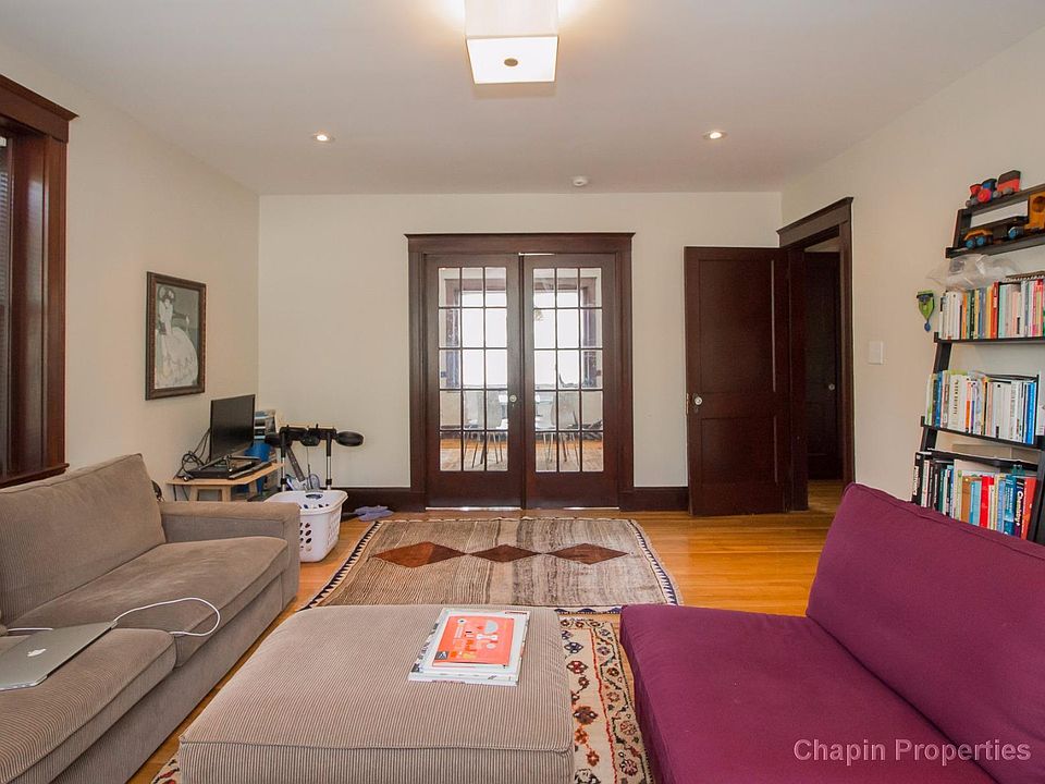 Huge three bedroom, 1 bathroom apartment located on a quiet tree lined street. First floor unit, features hardwood floors, old charm with modern touches, recessed lighting in the living room, spacious dining room with french doors leading to a huge sun filled living room. Renovated eat in kitchen with white cabinets, SS appliances, gas range, granite counters, dishwasher, butler's pantry and a ceiling fan.Renovated tiled bathroom. Bonus enclosed porch which would be perfect for extra storage or a sitting area. Laundry in the basement. Garage parking available for rent. Shared yard. Steps to parks, the 60 Bus, restaurants, grocery and more.Walk to the Brookline Hills stop, Jamaica Pond, Brookline Village, Longwood Medical. Pets negotiable. Photos from a previous tenant