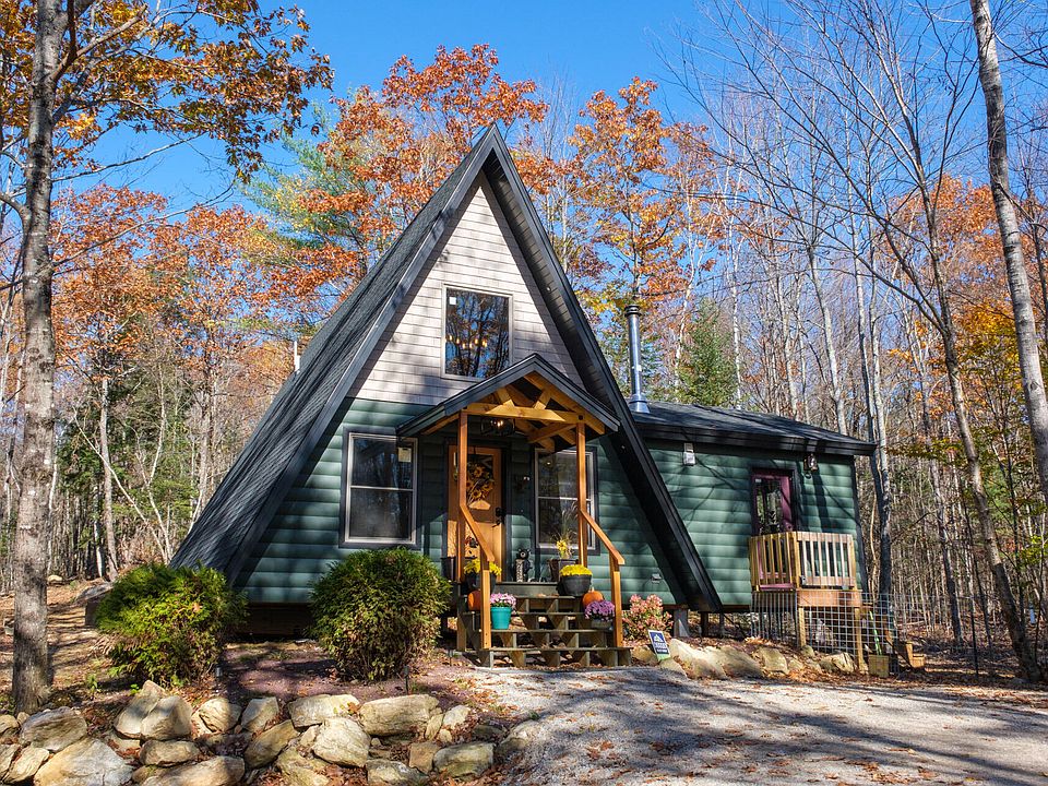 New custom built post and beam A-Frame with detached 2 car garage on 4.42 +/- Acres with its own private walking trails and a small man made pond! This property was just completed in 2021 and was built very well with energy efficiency in mind. The entire property was spray foam insulated inside and can be heated all season long very minimally with just the wood stove and electric baseboard units. The sleeping arrangements offers a 1st floor primary bedroom with large bath, a bonus room on the 1st floor that can also be used as a bedroom or office and a loft bedroom upstairs with its own bath as well for family or visiting guests. The septic design is for a 2 bedroom system but could easily be added to if wanting the designated 3rd bedroom. The home is tastefully completed everywhere you look from the custom kitchen with butcher block counters to the exposed post and beam through out. The custom bath on the main level features a oversized pebble shower with matching vanity with stone sink. Your magnificant Maine getaway awaits! View our Matterport 360* virtual tour or call to setup a showing today.