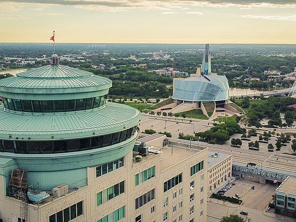 25-floor concrete apartment building located downtown in one of Winnipeg's most iconic buildings