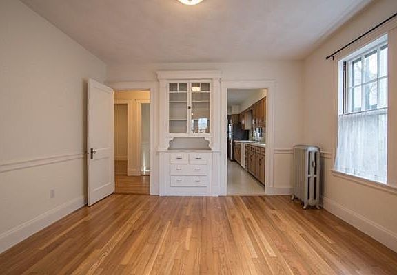 A 1st-floor gem! 2 Off-street parking spots which includes 1 garage parking space. Oak hardwood floors in the unit have just been refinished. Entire unit has been freshly painted as well. Sunroom/office off of living room. Dining room with built-in china cabinet. Eat-in kitchen with oak cabinets and lots of storage. Formal dining room. Basement storage and dedicated washer & dryer, no need to buy washer and dryer! Newly installed kitchen floor, glass tile backsplash, kitchen wainscoting, dishwasher, light fixtures and more. No cats (due to allergies) Dogs negotiable Great location in a wonderful neighborhood: 6-minute walk to Cushing Sq. shops and restaurants 10 minutes walk to Belmont Studio Cinema, shops and restaurants 1 mile to Belmont Center 2/3 mile to Waverly Sq. & Fitchburg line train to North Station 3 minute walk to #73 Waverly - Harvard Sq. bus 14 Minute Bus Ride to Harvard Square