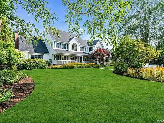 Incredible 6 bedroom, 3.5 bath colonial built by well respected builder Hine in The Orchards. Fabulous 29' front porch constructed of Ipe hardwood is 8.5' deep for comfortable outdoor relaxing. The grand 2 story entrance opens to the formal living room and dining room both featuring French doors. Enter into the granite kitchen with newer appliances including a Thermador double wall oven, Vent-A Hood exhaust fan, new Asko dishwasher, Insinkertor and new refrigerator. Large walk in pantry with self lighting gives additional storage. The Breakfast area in the kitchen features Marvin sliding doors leading to the mohogany deck w built in gas barbeque and granite countertops.