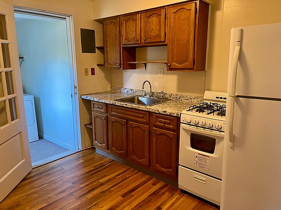 This meticulously maintained 1st floor ranch unit with private entrance is ready for immediate occupancy. The interior has been freshly painted and is enhanced with oak hardwood floors. Living room w/ entry closet; charming fully-applianced kitchen w/ oak cabinets; 1st floor laundry; bedroom w/ double closet & linen closet; & remodeled bathroom with pedestal sink, bathtub with subway tile surround, mirrored medicine cabinet, & attractive tile floor. charming brick exterior painted gray, thermo-pane windows, newer paved private driveway in front of unit, & use of lovely level side yard. Owner looking for a tenant w/ good credit & references. Please, no pets allowed. 1st month's rent, last month's rent, and one month security (3 months total. Lawn maintenance, water, & sewer usage included in rent. Owner lives in main house and prefers 2 year lease if possible. No smoking allowed