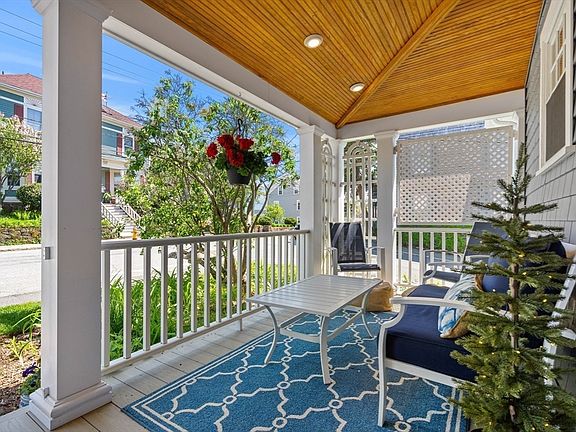 This exquisite 1880 Colonial single-family home masterfully blends historic charm with modern comfort. Tastefully updated while preserving period details, it is located on one of Marblehead's most coveted streets. Upon entering the foyer, you are greeted by an expansive living room featuring a wood fireplace and beamed ceiling. The renovated kitchen boasts a peninsula, stone countertops, stainless steel appliances,and ample storage, opening to a spacious dining room. Adjacent to the kitchen is a versatile den, office, or bedroom, along with a full bath and access to the front covered porch. Additionally, there is a covered deck off the hallway that overlooks the backyard. The second floor offers three generously sized bedrooms, a hallway bathroom, and a laundry area. The finished lower level includes a full bath, one bedroom, a family room, and a storage area. Recent updates to the home include a one-car garage, heating system, roof, and siding. Located close to restaurants and shops.