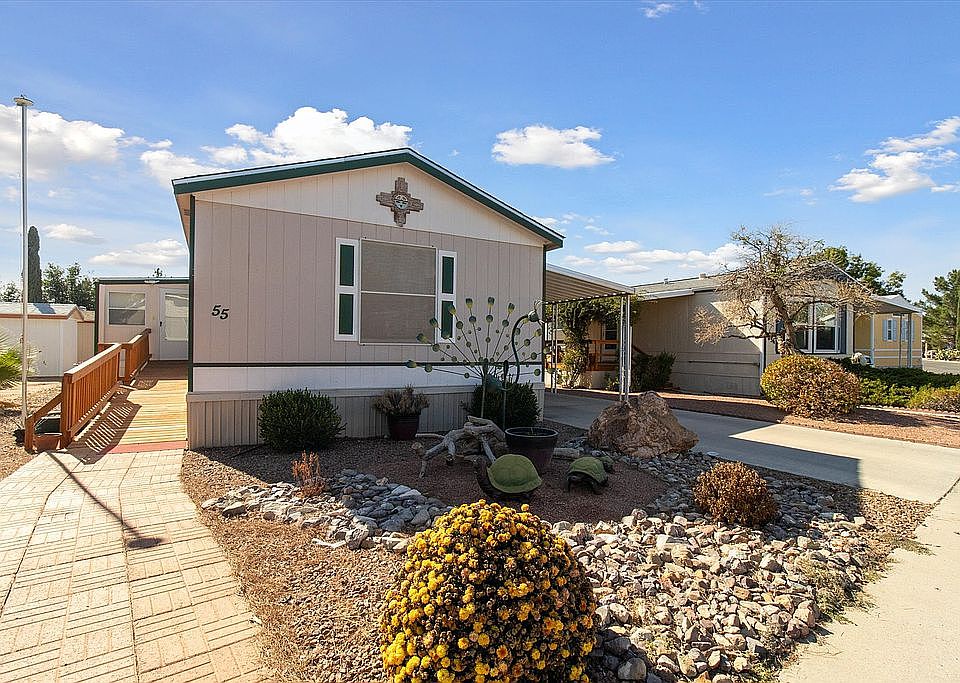 Introducing the exquisite retirement oasis in a serene and vibrant 55+ age community in Las Cruces with this 3-bed, 2-bath single wide manufactured home. Boasting a brand new dishwasher and garbage disposal in the kitchen. Refrigerated forced air cooling the home. Laminated wood flooring installed throughout the entire home including the open spaced living room and primary bedroom while the other two bedrooms provide the comfort of carpet. An enclosed wooden porch with windows invites you to enjoy the outdoors, rain or shine, and a covered carport adds convenience. Please note that the land is not included, but if the home stays within the park, you'll have access to a host of community amenities, including two clubhouses, heated indoor and outdoor pools, fitness facilities, a billiards room, a library, and even a dog park. With close proximity to 4 golf courses and a large multipurpose room for gatherings, and much more that offers a vibrant and fulfilling lifestyle for those aged 55+. Contact me today for a showing and make this manufactured home yours and experience the best of 55+ living in this welcoming community.