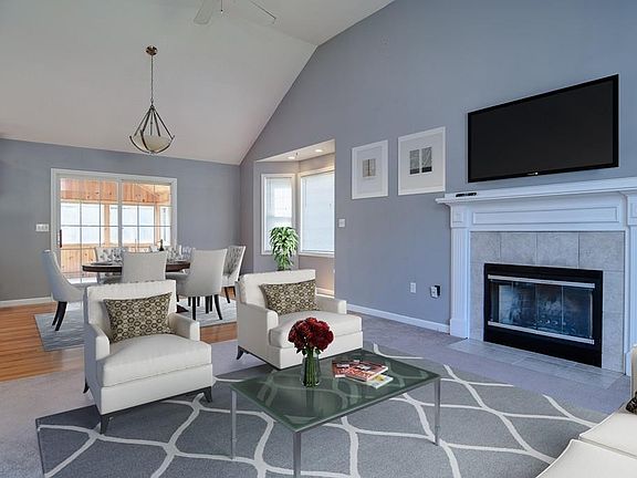 - Liv Dscrp: Flooring - Wall To Wall Carpet, Fireplace, Ceiling - Cathedral, Ceiling Fan(s), Window(s) - Picture