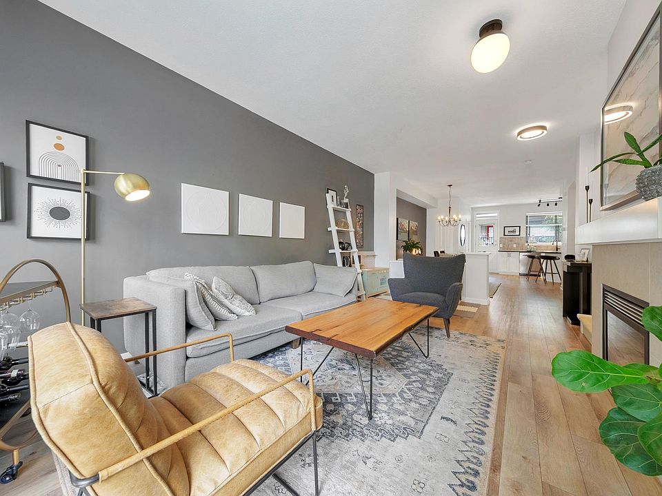 Beautifully designed 1,728 sq ft, 4-bed, 2.5-bath townhome blends contemporary living with outdoor adventure. Set steps from biking & hiking trails with a stunning mountain backdrop. The open-concept main floor features a gourmet kitchen with stone countertops & stainless steel appliances, flowing into a bright living & dining space ideal for entertaining. Enjoy two balconies, one west-facing off the living room & another off the kitchen, perfect for BBQs, as well as a ground-level patio. The primary suite offers a walk-through closet. 2 additional bedrooms & a renovated bath complete the upper floor. Downstairs, a spacious garage provides storage, alongside a versatile flex room ideal for a home office, playroom, guest space. Prime school catchment & location for a growing family!