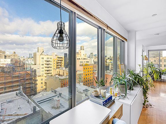 Welcome to 55 Hester 11A, a prestigious top-floor residence within an exclusive elevator condominium, boasting unparalleled views. This spacious abode is bathed in natural light streaming through a magnificent wall of nine west-facing windows, offering panoramic vistas of New York City skyline and breathtaking sunsets every evening.