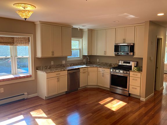 Modern updated townhouse with an open concept kitchen and a private deck and patio. Walking distance to downtown and commuter rail Renter is responsible for gas and electricity, one year lease. No pets. Two off street parking spaces.