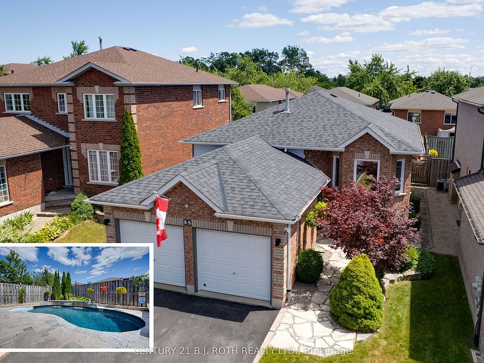 Nestled in the heart of the coveted Holly neighbourhood, 55 Holly Meadow Road is a rare offering that blends refined elegance with modern functionality. From the moment you arrive, impeccable curb appeal sets the stage: professionally landscaped gardens, an interlock walkway, and an in-ground sprinkler system create a grand yet inviting welcome. Inside, natural light pours into a thoughtfully designed, sun-filled interior, where every inch exudes sophistication. Smooth ceilings, designer light fixtures, and sleek pot lights illuminate rich updated floors, while timeless crown moulding and classic wainscoting add architectural charm. At the heart of the home lies a truly exceptional chefs kitchen - fully renovated with no detail overlooked. Featuring an oversized island with generous storage and seating, quartz countertops, stainless steel appliances, a wine fridge, custom coffee station, and subway tile backsplash, this kitchen is as beautiful as it is functional. Undermount sensor lighting and expansive windows highlight the finishes and frame serene views of the backyard retreat. The primary suite is a private haven, complete with a designer feature wall, a walk-in closet, and views of the backyard oasis. The main bathroom is a show piece - offering a walk-in glass waterfall shower, heated towel rack, double vanity, and elevated spa-like finishes designed for pure relaxation. The fully finished lower level offers remarkable versatility with two additional bedrooms, a 4-piece bathroom, and a sprawling recreation room ideal for a home gym, theatre, or games lounge. Step outside to your private resort. Professionally landscaped and paved with luxurious travertine stone, the backyard boasts an in-ground heated saltwater pool with a calming water feature. Surrounded by multiple lounging and dining areas, this serene outdoor space offers total privacy - an entertainer's dream and tranquil sanctuary in one.
