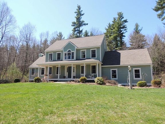 Beautiful Colonial located on a long driveway at the end of a Cul-De-Sac. Private yard abuts conservation land. Gorgeous farmer's porch to enjoy a nice book or cup of coffee. Welcoming front entry way opens to a kitchen that was totally renovated in late 2013 with hardwood floors, granite countertops, and stainless appliances. Separate eating area and peninsula for gatherings. Hardwood floors throughout the first floor. Fireplaced family room with plenty of windows to allow natural light. Slider to generous Azek deck built in 2015 that overlooks a serene back yard with nothing but woods behind. Three generous bedrooms and a walk up attic that has been finished for added bonus room/guest room/playroom! Stone walkway, granite lamp posts and front steps, and beautiful mature landscaping.
