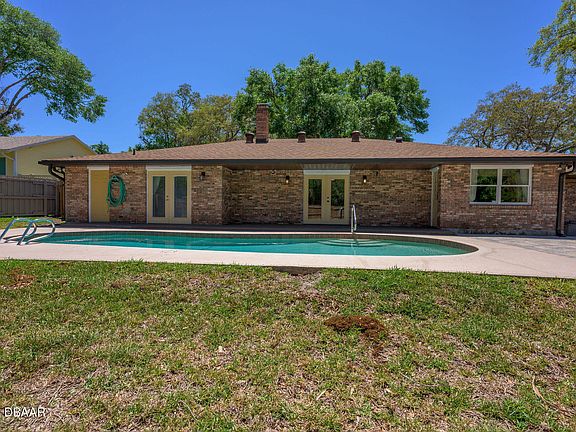 PRICE ADJUSTMENT!! One of Ormond Beach's hidden gems is the established Hidden Hills neighborhood. You have it all with this treelined & peaceful location but close to EVERYTHING! If some extra room is what you're looking for, this home has it all...inside and out! Just over 2,100 square feet of living area! The spacious kitchen has granite countertops, cherrywood cabinets, and stainless steel appliances. There is beautiful porcelain tile throughout the home excluding the bedrooms. The large living room with a fireplace (per seller is not currently functioning) has French doors leading out to the inground pool with additional paved entertaining area and firepit. There is a pool half bath and an outdoor shower. The backyard is completely privacy fenced in. The primary suite has a walk-in closet and additional French doors leading out to the pool area. His & her vanity, linen closet and shower with tub are in the primary bath. The bonus room has so many options...office, playroom, den, exercise room, etc. The laundry room includes Whirlpool washer & dryer. There is plenty of parking with 2 driveways and 2 car garage. The 2 car garage has a 220 volt and A/C window unit. NO FLOOD ZONE! Wind mitigation report and 4 point inspection report done in November 2023. Hip roof with hurricane straps. Improvements and updates include: Seamless Gutters, Refinished pool deck, Roof March 2022, Hot water heater 2019, HVAC February 2024, and in June 2024 over $50,000 was invested in the pavers for the entertaining area & firepit along with privacy fencing and some clearing. This is definitely a gem!!
